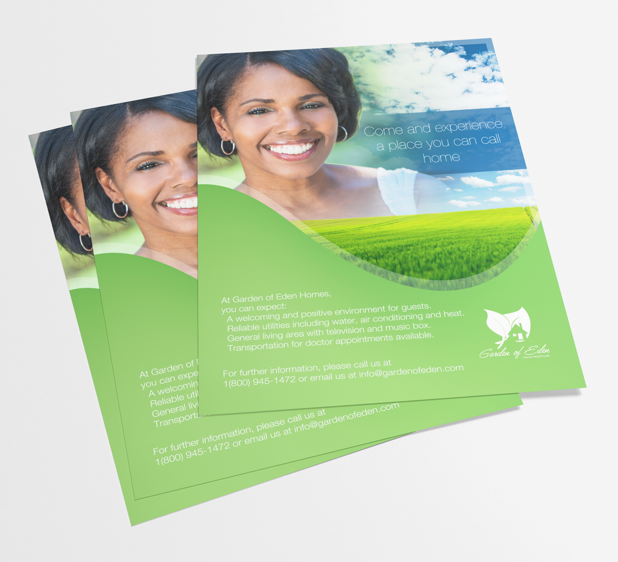 Garden of Eden, a home healthcare provider specializing in elderly care, sought a comprehensive package encompassing a corporate identity, business card, and promotional flyer. The objective was to visually communicate the warmth and compassionate care offered by the professional staff to their clients. The final deliverable successfully captures and communicates this essential aspect.