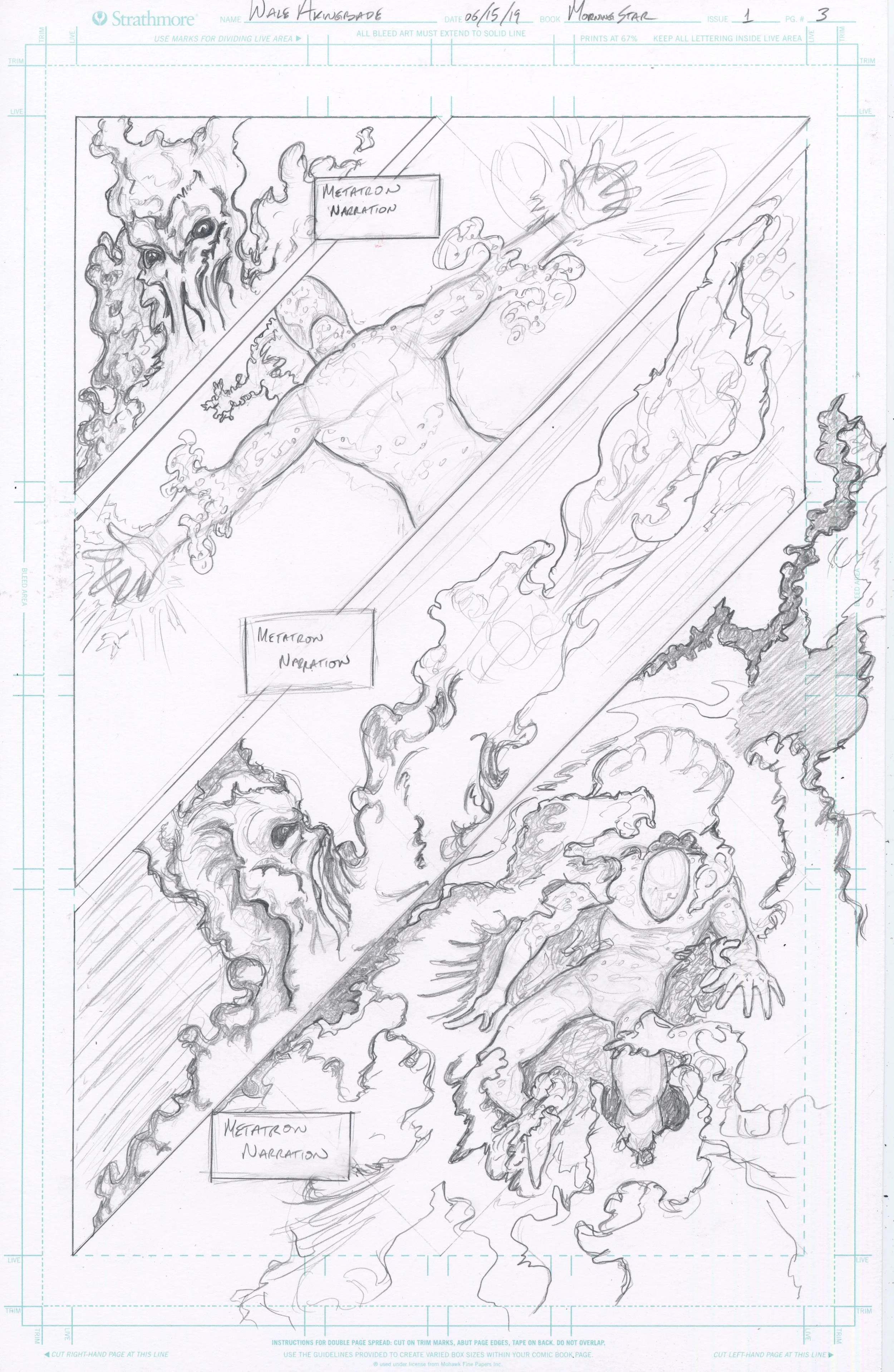 Work is currently in progress on a comic book series chronicling the ascent and subsequent descent of the character Angel Heylel. Here are a couple of pages from the first issue in production.